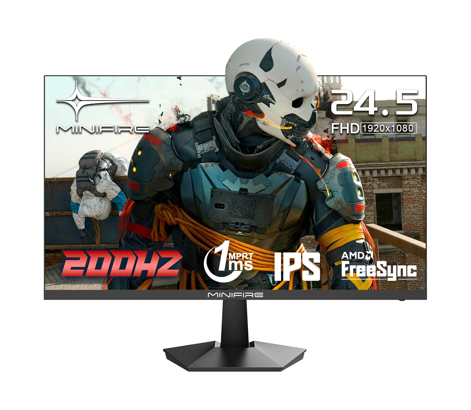 Minifire Ecran PC Gamer 24.5 Pouces MFG25X1, 200Hz Ecran Gaming, 1ms, IPS, 120% sRGB, FHD 1080P, Adaptive Sync, HDR 10, HDMI 2.0 & DisplayPort 1.4,VESA 75x75mm, Faible Lumière Bleue – Noir